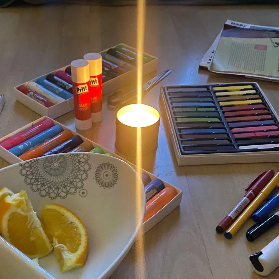 I offer online art therapy sessions that specialise in creativity and change. I collaborate to develop bespoke therapeutic goals based on the unique hopes and needs of the person or people I am working with.